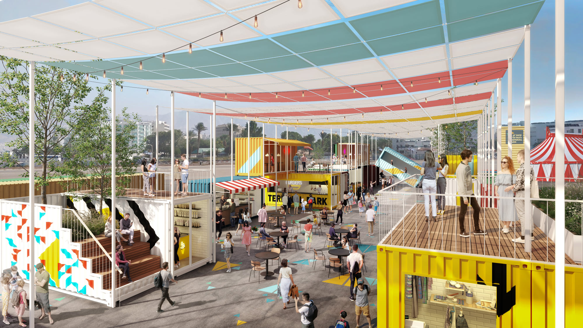 במטרה להשמיש את השטח שהתפנה גם בפרק הזמן המיידי, גיבשנו תכנית לשימושים זמניים באזור. התכנית הגדירה סט רחב של התערבויות רכות במרחב – כאלה שאינן דורשות עבודות פיתוח מאסיביות או משנות את המרחב בצורה כזו שתפריע לתכנית המתאר המקודמת להתממש בעתיד. הרעיון שהוביל את תכנית השימושים הזמניים היה החיבור בין העיר העילית המשרתת את התושבים לעיר התיירותית הסמוכה לקו החוף, וכך נולד הרעיון של פארק עירוני במרכז אילת, שיחגוג את המרחב הציבורי, יגשים מודלים קהילתיים וישתמש במתקנים הקיימים בשטח בצורה יצירתית וחדשנית.
